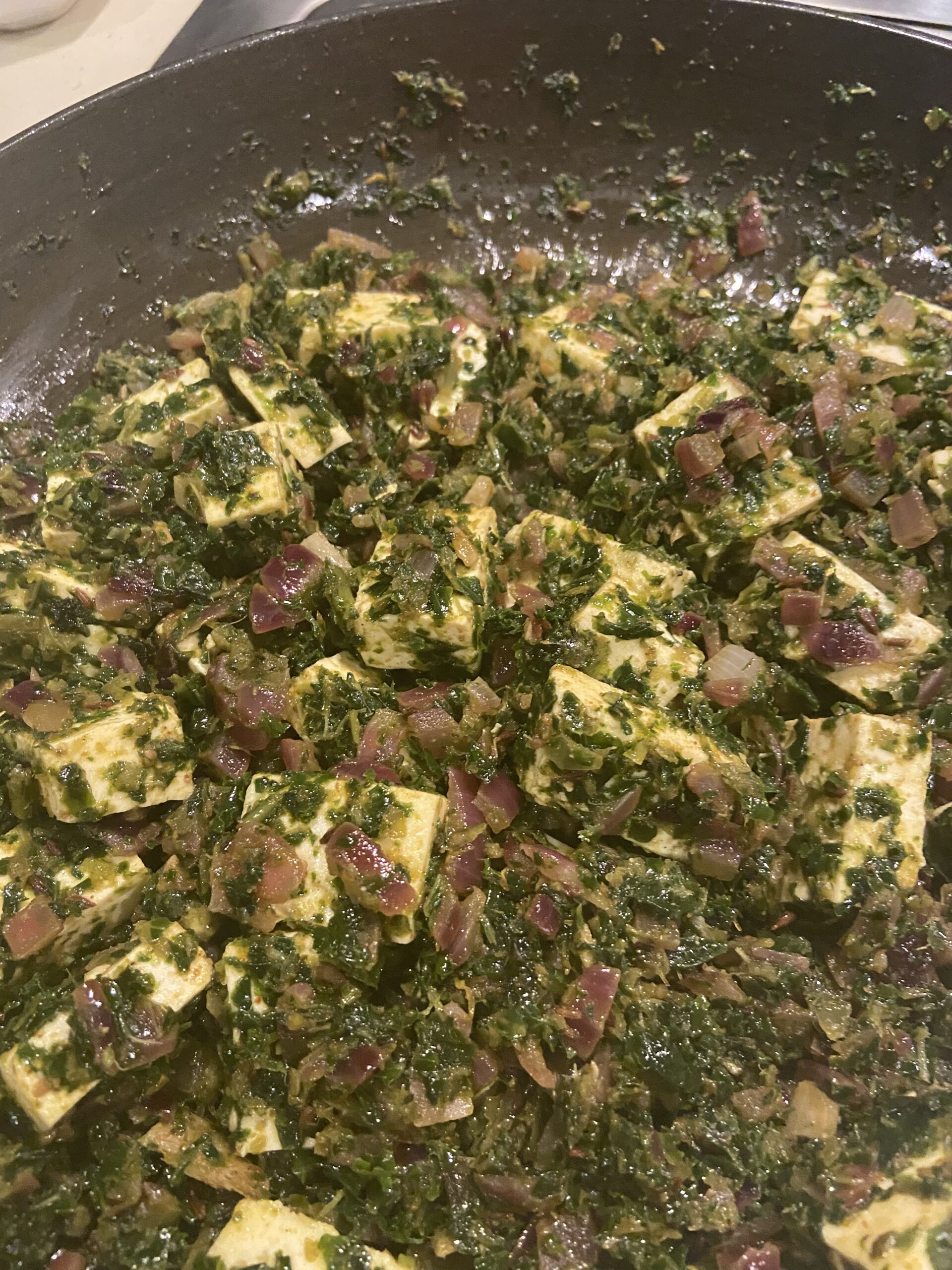 - Add paneer cubes and cook for another 3–4 minutes until heated through.