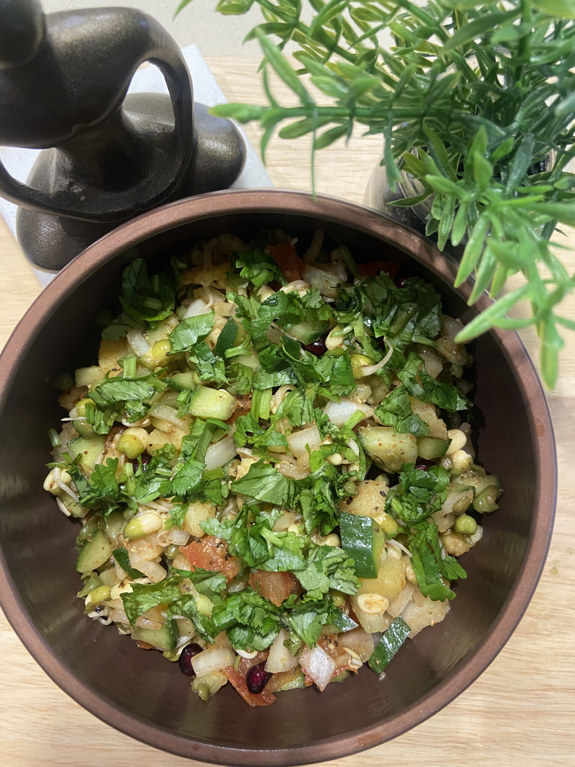 A refreshing, protein-rich sprout salad packed with crunch, tang, and vibrant colours. This bowl is loaded with plant protein, fibre, antioxidants, and polyphenols that support gut health, blood sugar balance, and sustained energy. Perfect as a light meal, mid-day snack, or side.